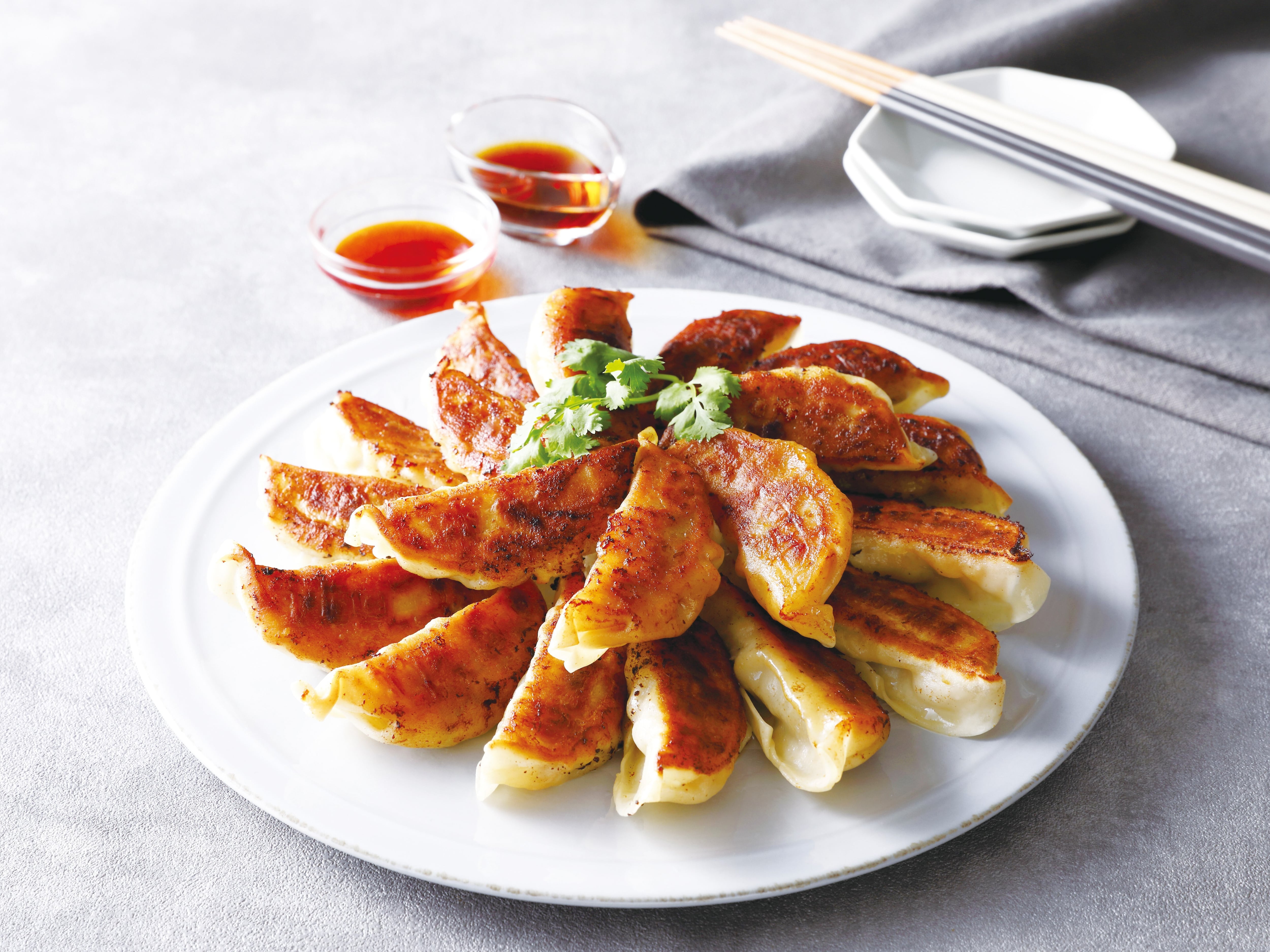蓮根の生産量全国2位の「佐賀県白石町の蓮根」と「鹿児島県産の黒豚」を使用した生餃子。