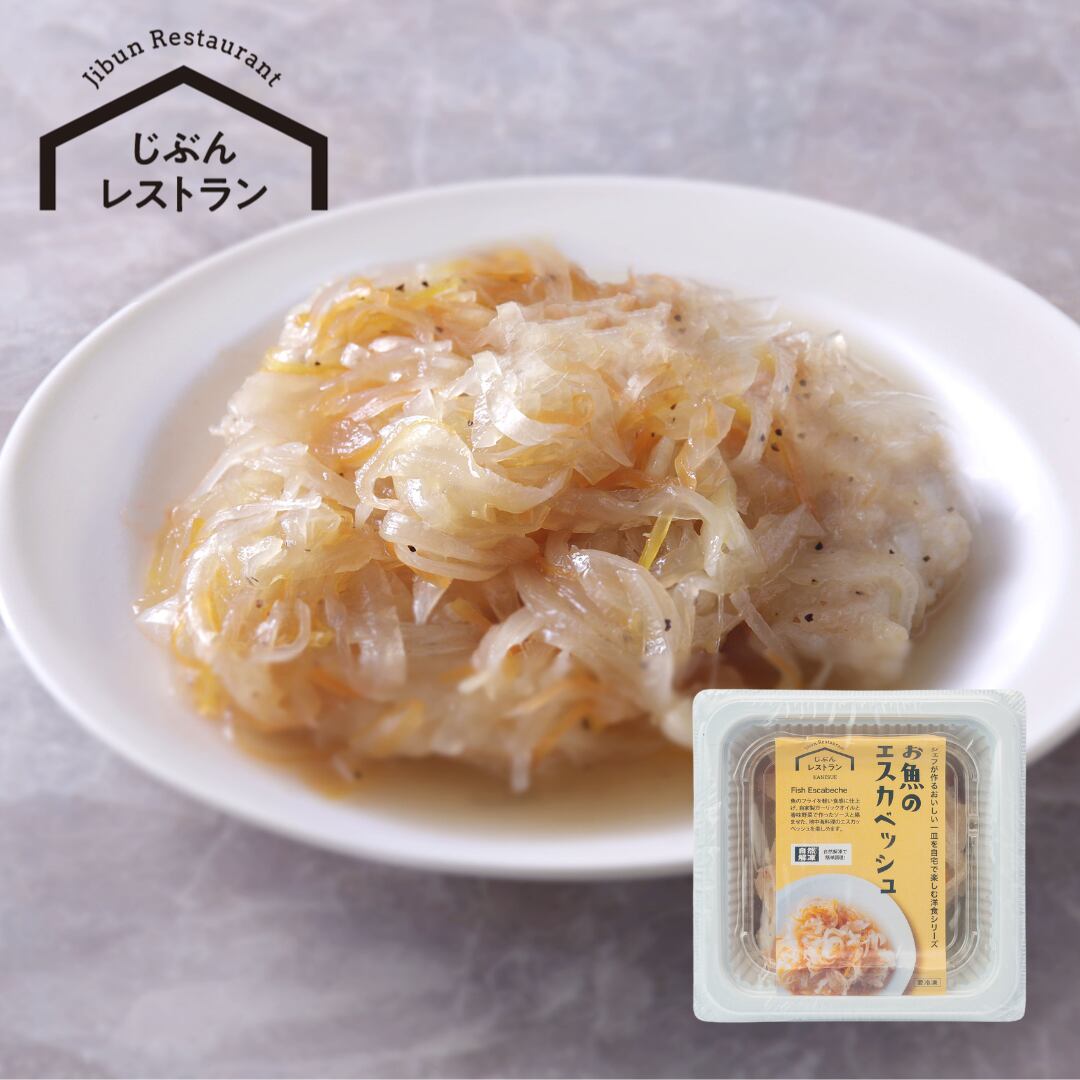 地中海の風を感じる、さっぱりとしたエスカベッシュがご家庭で手軽に楽しめます!丁寧に仕上げた魚のフライは軽い食感で、特製の自家製ガーリックオイルと香味野菜で作ったソースが絡み、豊かな風味をお届けします。